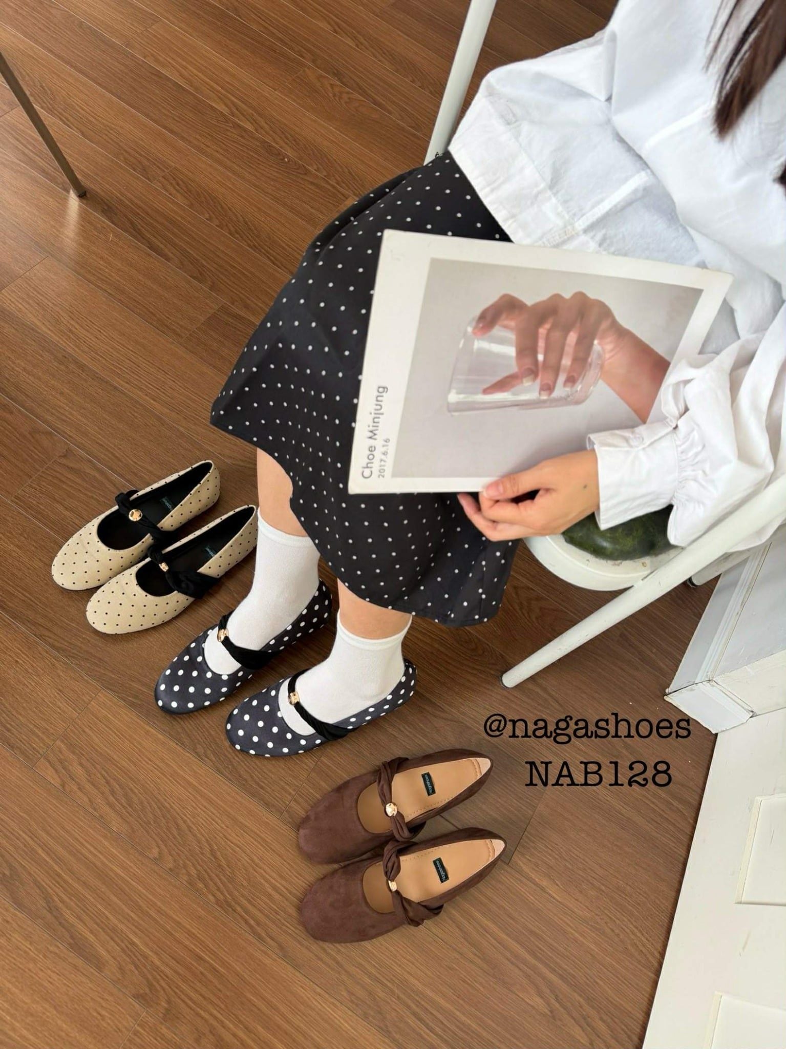GIÀY BÚP BÊ NAGASHOES MŨI TRÒN QUAI XOẮN PHỐI PHỤ KIỆN NAB128