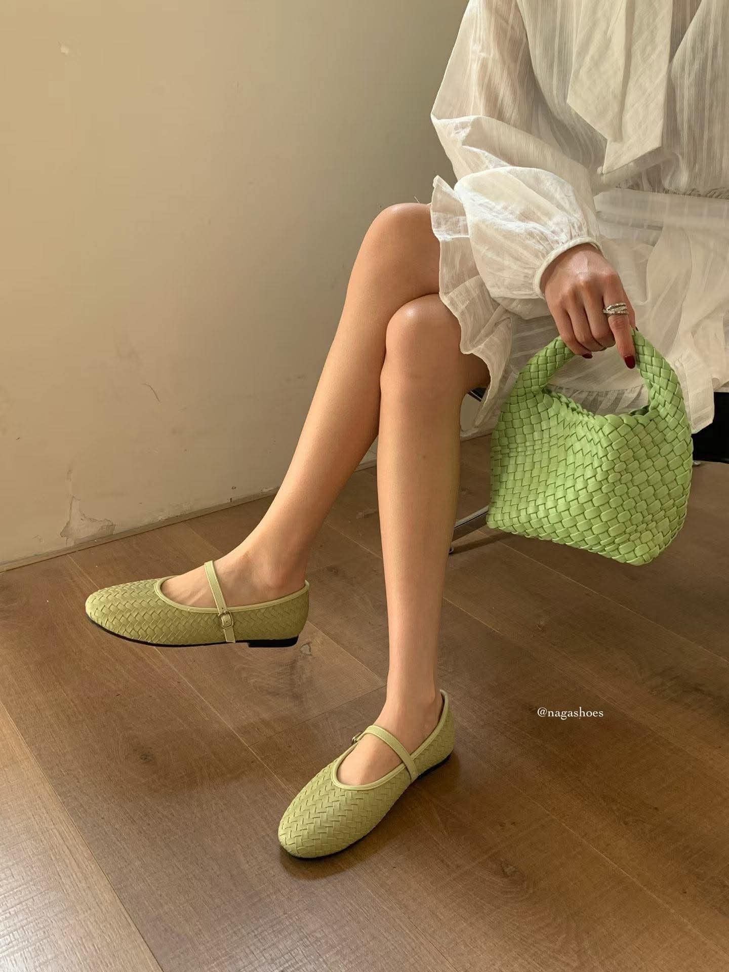 GIÀY BÚP BÊ NAGASHOES MŨI TRÒN ĐAN DÂY PHỐI QUAI NGANG NAB144