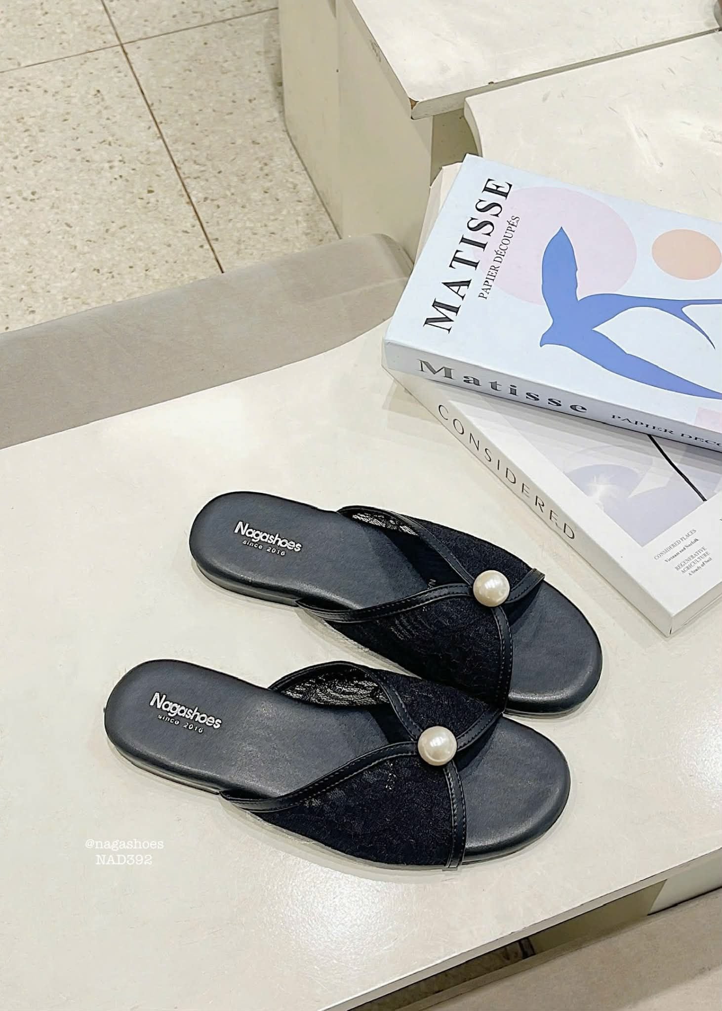 DÉP NAGASHOES QUAI LƯỚI REN ĐÍNH NGỌC NAD392