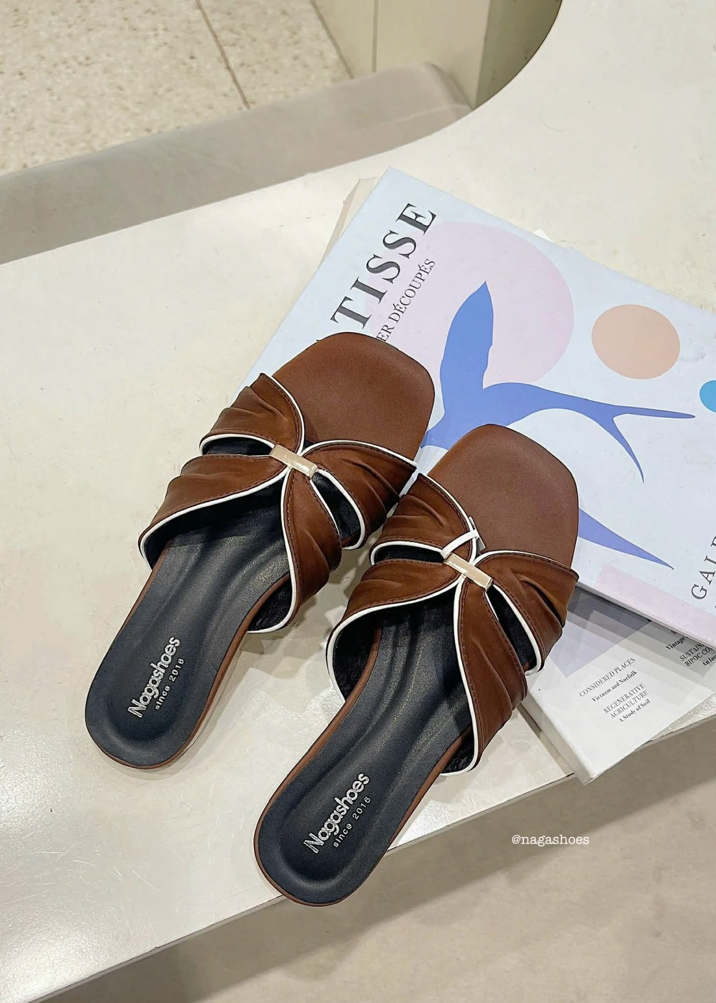 DÉP NAGASHOES DA MỀM QUAI CHÉO ĐÍNH KHÓA VÀNG NAD394