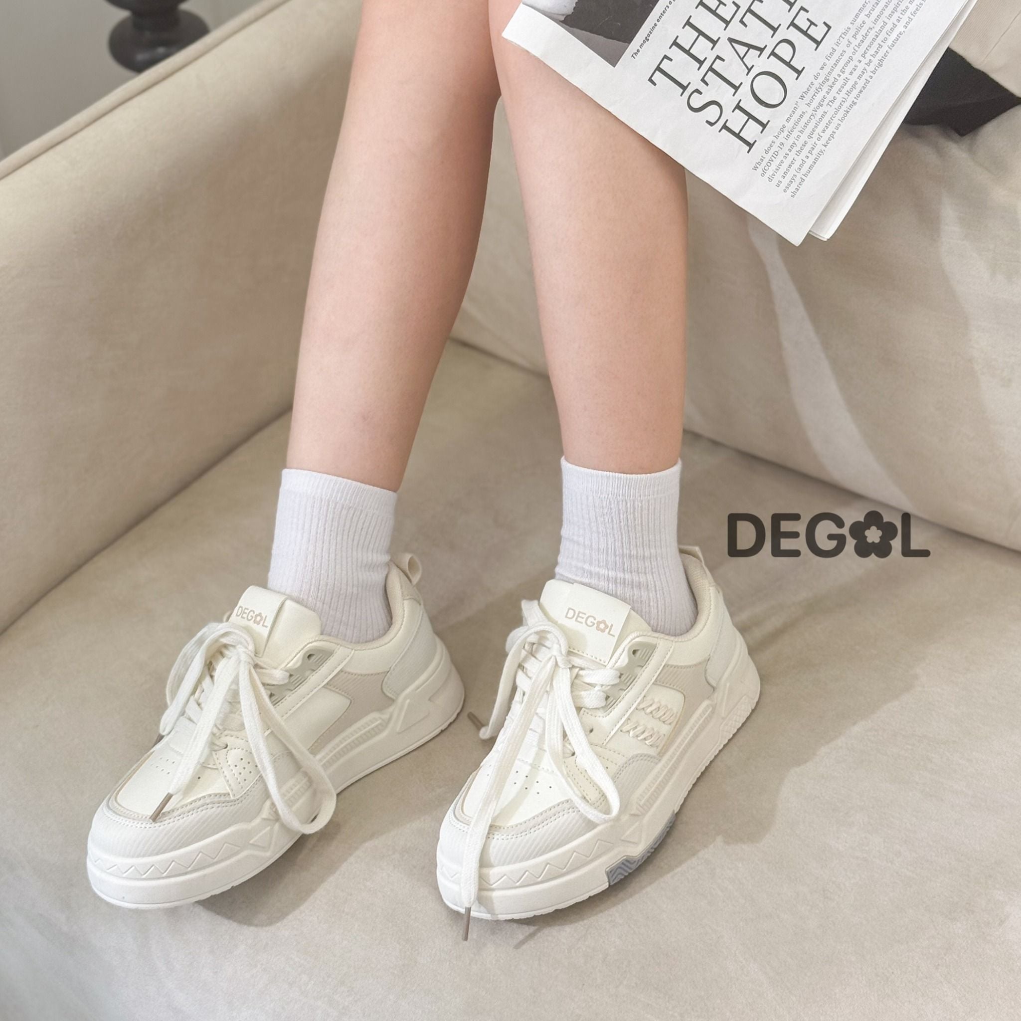 Giày Sneaker Degol hai sọc đan dây DG01